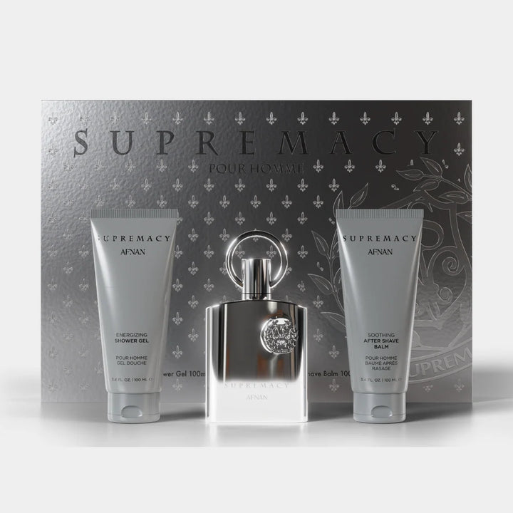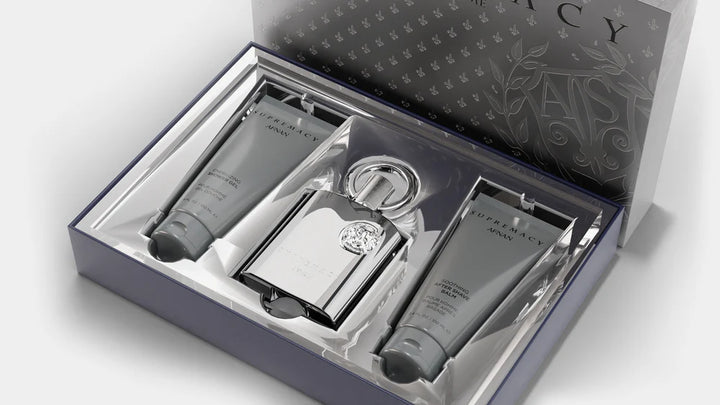 GIFT SET SUPREMACY SILVER SUPREMACY SILVER 100ML EDP AFTER SHAVE 100ML SHOWER GEL 100ML PERFUME NOTES Top Notes: Apple, Bergamot and Oak MossMiddle Notes: Pineapple, Patchouli and JasmineBase Notes: Musk, Ambergris and Birch